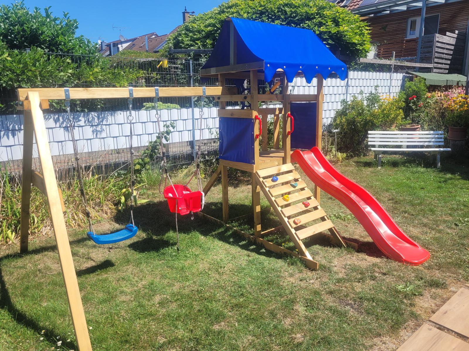 Wir gehen mindestens einmal am Tag an die frische Luft, denn frische Luft stärkt das Immunsystem, das kann z.B. im eigenen Garten sein, auf dem nahegelegenen Spielplatz oder im Wald. Dort haben die Kinder sowohl die Möglichkeit im Freispiel ihren Bewegungsdrang auszuleben, als auch durch gezielte Bewegungsanregungen und Impulse, sowie durch vielfältige Bewegungsspiele. Auch im Innenbereich biete ich den Kindern regelmäßig Bewegungsspiele an, z.B. Tanzspiele oder Bewegungslieder/-spiele. Dies beginnt schon im Morgenkreis und immer wieder nach Bedarf. Vor dem Mittagessen findet immer nochmal Bewegung statt, entweder durch ein Bewegungsspiel im Garten oder im Gruppenraum. Zudem gibt es Bewegungsmatten, auf denen sich die Kinder austoben können.